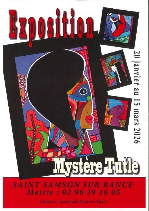 Exposition de Mystère Tutle Mystère Tutle, habitué des lieux, revient exposer ses oeuvres dans le hall de la mairie du 20 janvier au 15 mars 2026. Entrée accessible aux heures d'ouverture de la mairie.