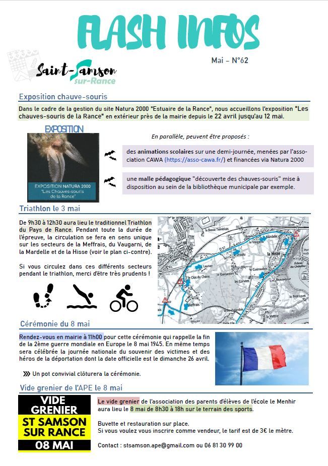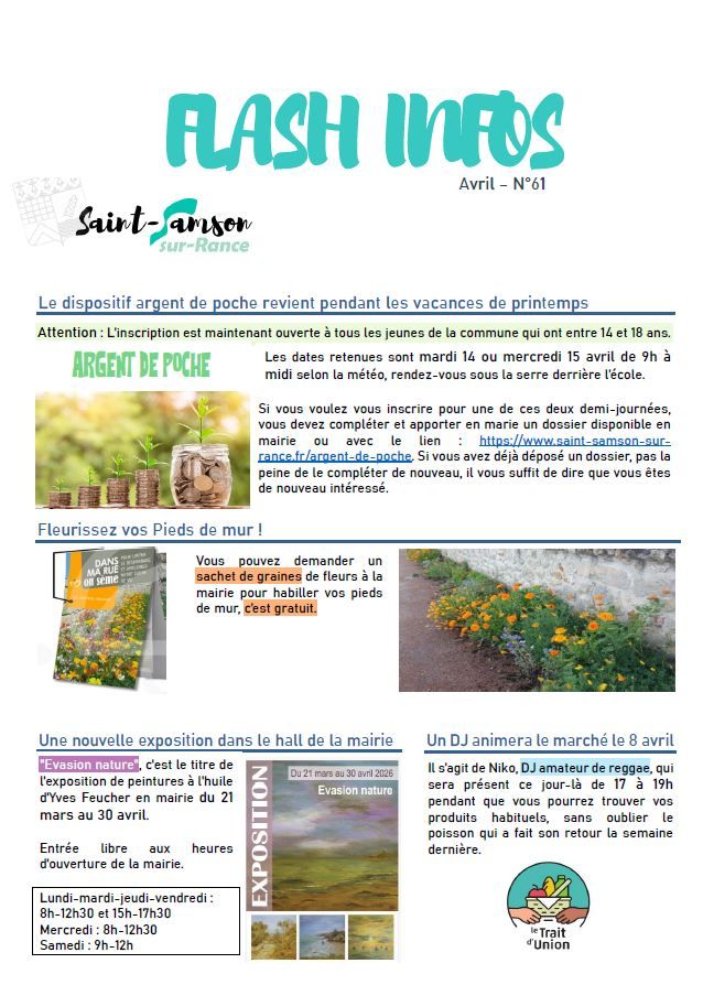 Fermeture de la Mairie et de la Bibliothèque Samedi 02 mai 2026 et samedi 08 mai 2026 FERMETURE EXCEPTIONNELLE DE LA MAIRIE ET DE LA BIBLIOTHEQUE LE SAMEDI 02 MAI 2026 ET SAMEDI 09 MAI 2026 En cas d’urgence merci de nous contacter à ce numéro : 06.31.21.68.52