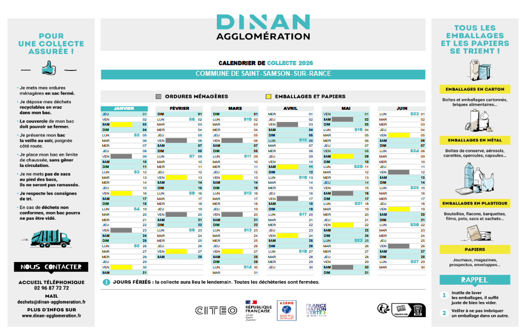 Vous pouvez télécharger le votre en cliquant sur votre commune sur la carte dédiée qui se trouve sur le site de dinan agglomération : https://www.dinan-agglomeration.fr/actualites/calendriers-de-collecte-des-dechets-2026/